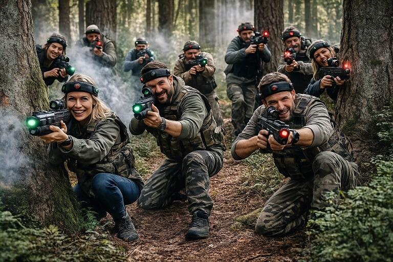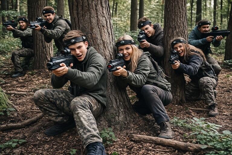 Outdoor lasertag v Bratislave – akčná tímová hra plná adrenalínu, pohybu a zábavy. Ideálne pre oslavy, skupiny priateľov aj teambuildingy.