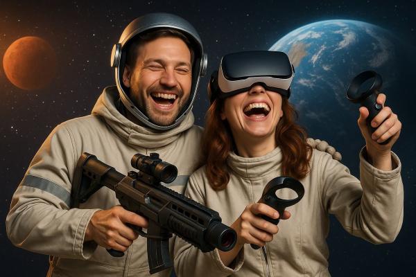 Lasertag vo virtuálnej realite v Bratislave. Tímová akčná hra plná adrenalínu, pohybu a VR zábavy.