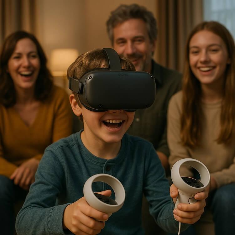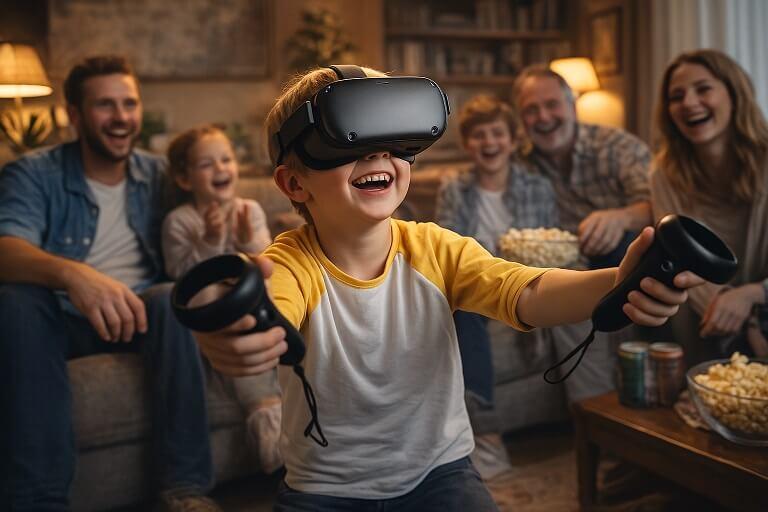 VR set je vhodný na hranie hier, virtuálne zážitky, krátke prezentácie aj zábavu pre skupiny. Ovládanie je intuitívne a zvládnu ho aj úplní začiatočníci. Virtuálna realita je ideálnym spestrením osláv, teambuildingov, rodinných stretnutí alebo firemných akcií.
